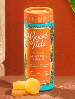 Vibe out poolside with Good Tide mango gummies. Naturally rich in myrcene, real mango makes an ideal match for our indica-leaning rosin. With naturally occurring terpenes and minor cannabinoids present in our solventless hash rosin, our mango gummies are dripping with relaxing plant properties to produce a mellow, laid back high. Unwind and drift into a tropical state of mind. 10mg per gummy, 100mg per package | 10mg per 1/2 gummy serving.