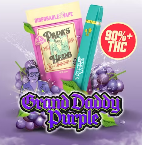 Granddaddy Purple is an indica marijuana strain that goes by many different names, including "Grand Daddy Purp," "Granddaddy Purps," "GDP," and "Grandaddy Purple Kush." Popularized in 2003 by Ken Estes, Granddaddy Purple (or GDP) is a famous indica cross of Mendo Purps x Skunk x Afghanistan. This California staple inherits a complex grape and berry aroma from its Mendo Purps and Afghanistan parent, while Skunk passes on its oversized, compact bud structure. GDP flowers bloom in shades of deep purple, a contrasting backdrop for its snow-like dusting of white crystal resin. Its potent effects are clearly detectable in both mind and body, delivering a fusion of cerebral euphoria and physical relaxation. While your thoughts may float in a dreamy buzz, your body is more likely to find itself fixed in one spot for the duration of GDP’s effects. Granddaddy Purple is typically chosen by consumers looking to combat pain, stress, insomnia, appetite loss, and muscle spasms.